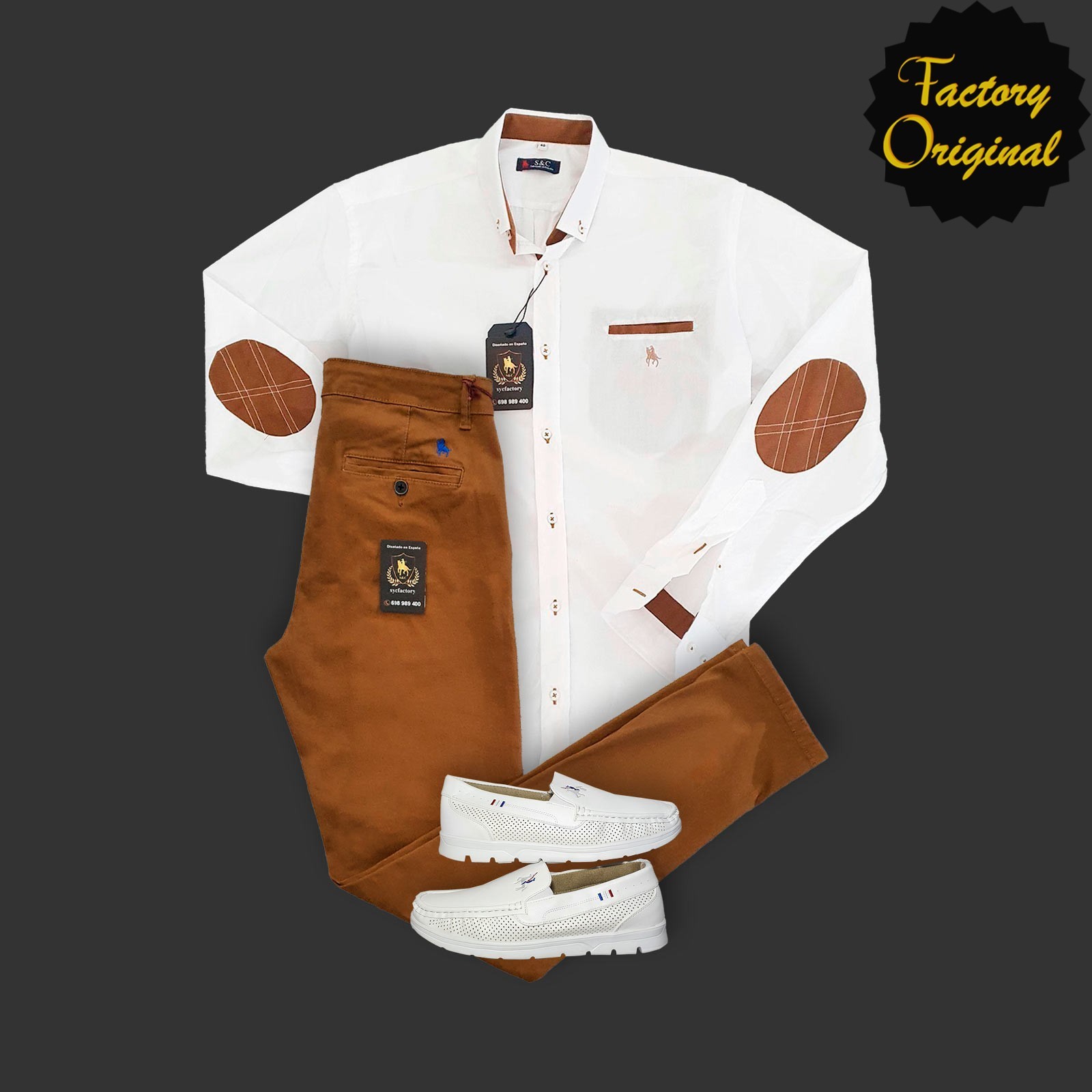 Pack camisa hombre blanca codera camel chino elastico camel nautico premium blanco SYC Factory Original
