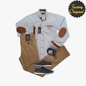 Camisa hombre modelo puntilleo con coderas camel SYC Factory Original