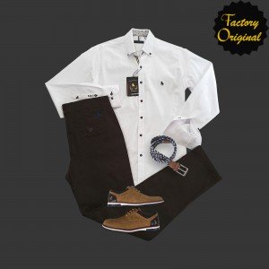 Pack camisa hombre modelo sylus blanca pantalón chino chocolate zapato camel SYC Factory Original
