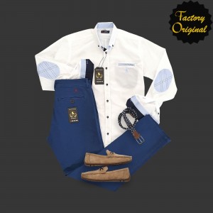 Pack camisa hombre modelo LISO BLANCA COD CELESTE pantalón chino AZUL ROYAL nautico beis SYC Factory Original