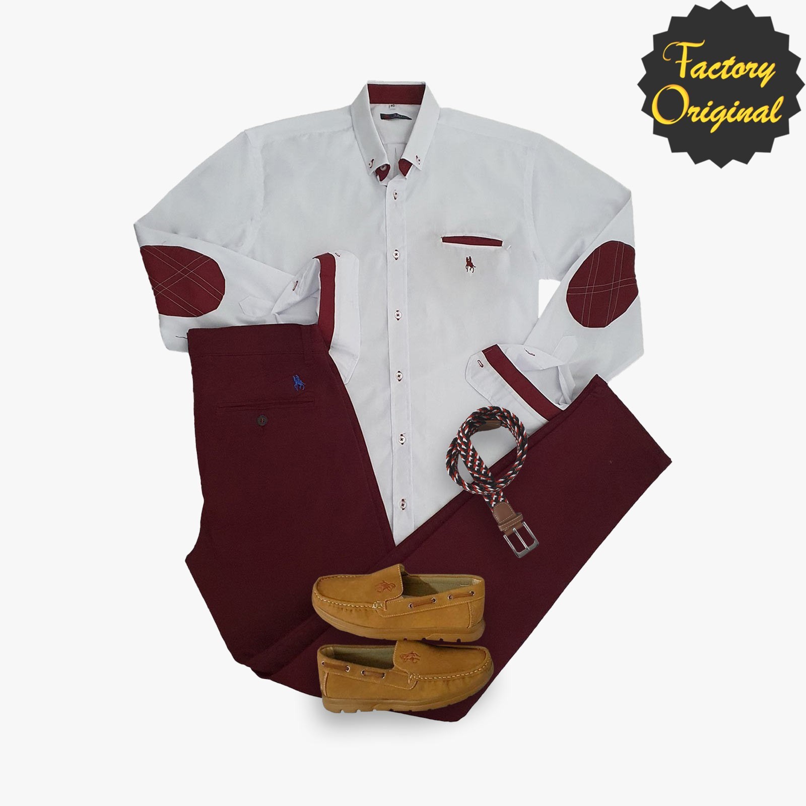 Pack camisa hombre modelo LISO BLANCA CODera granate pantalón chino granate nautico camel SYC Factory Original