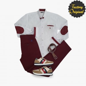 Pack camisa hombre modelo LISO BLANCA CODera granate pantalón chino granate deportivo camel SYC Factory Original