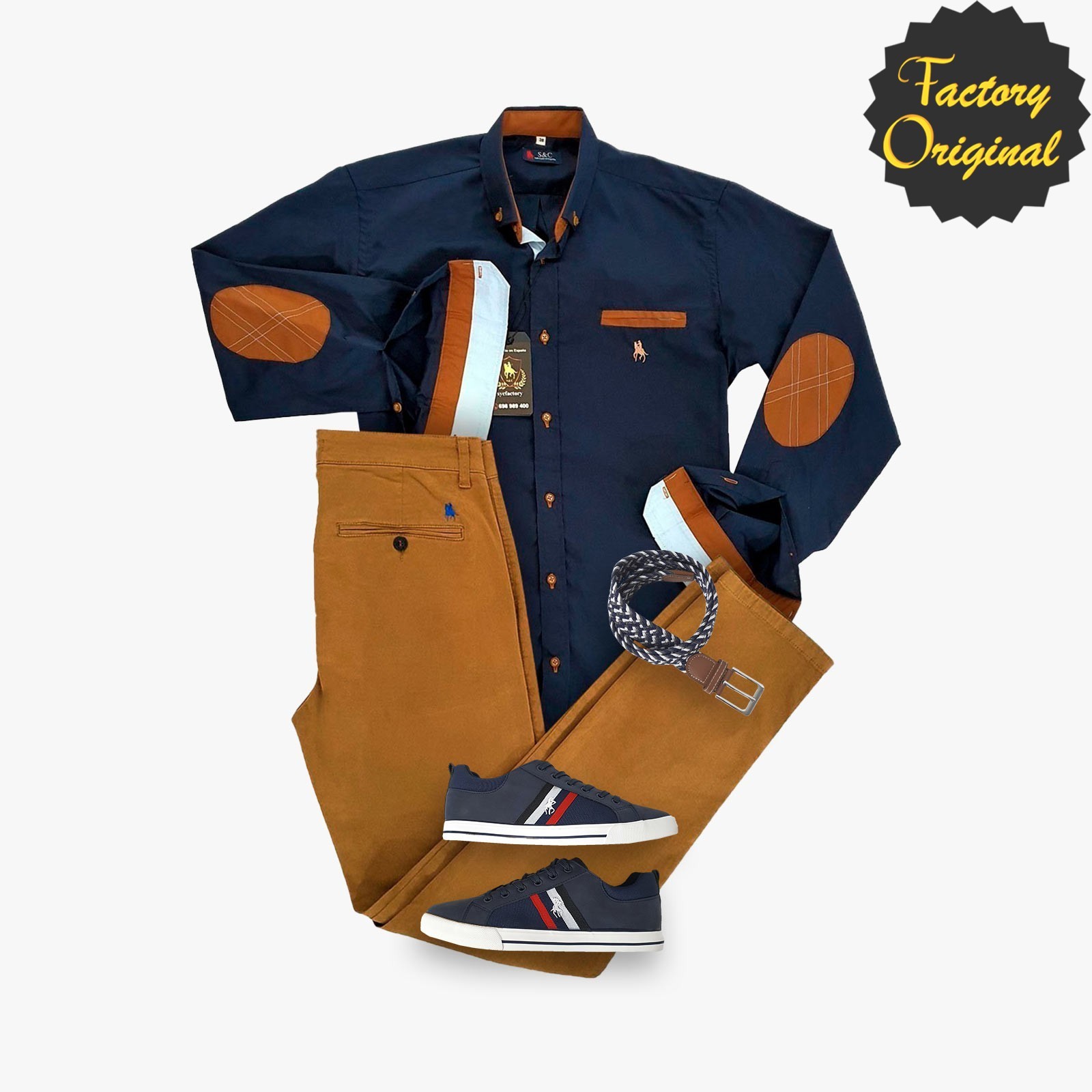 Pack camisa hombre marino codera camel pantalón chino camel deportivo street marino SYC Factory Original