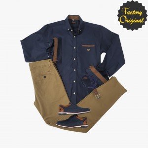 Pack camisa hombre patriota softi marino pantalón chino patriota camel mocasin perry marino SYC Factory Original