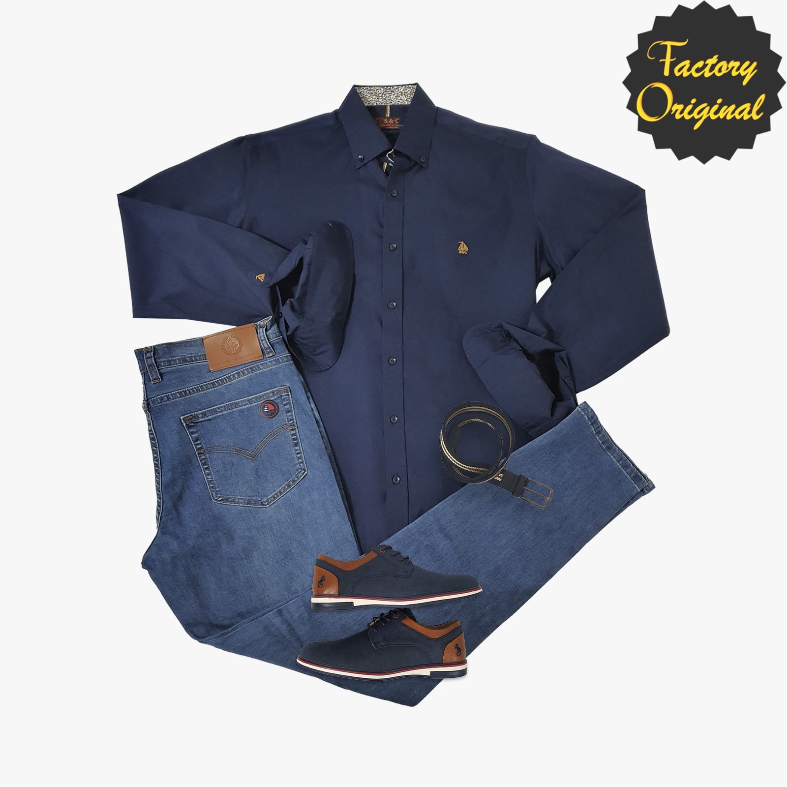 Pack camisa hombre barco marino Antonio pantalón barco ibiza mocasin perry marino SYC Factory Original