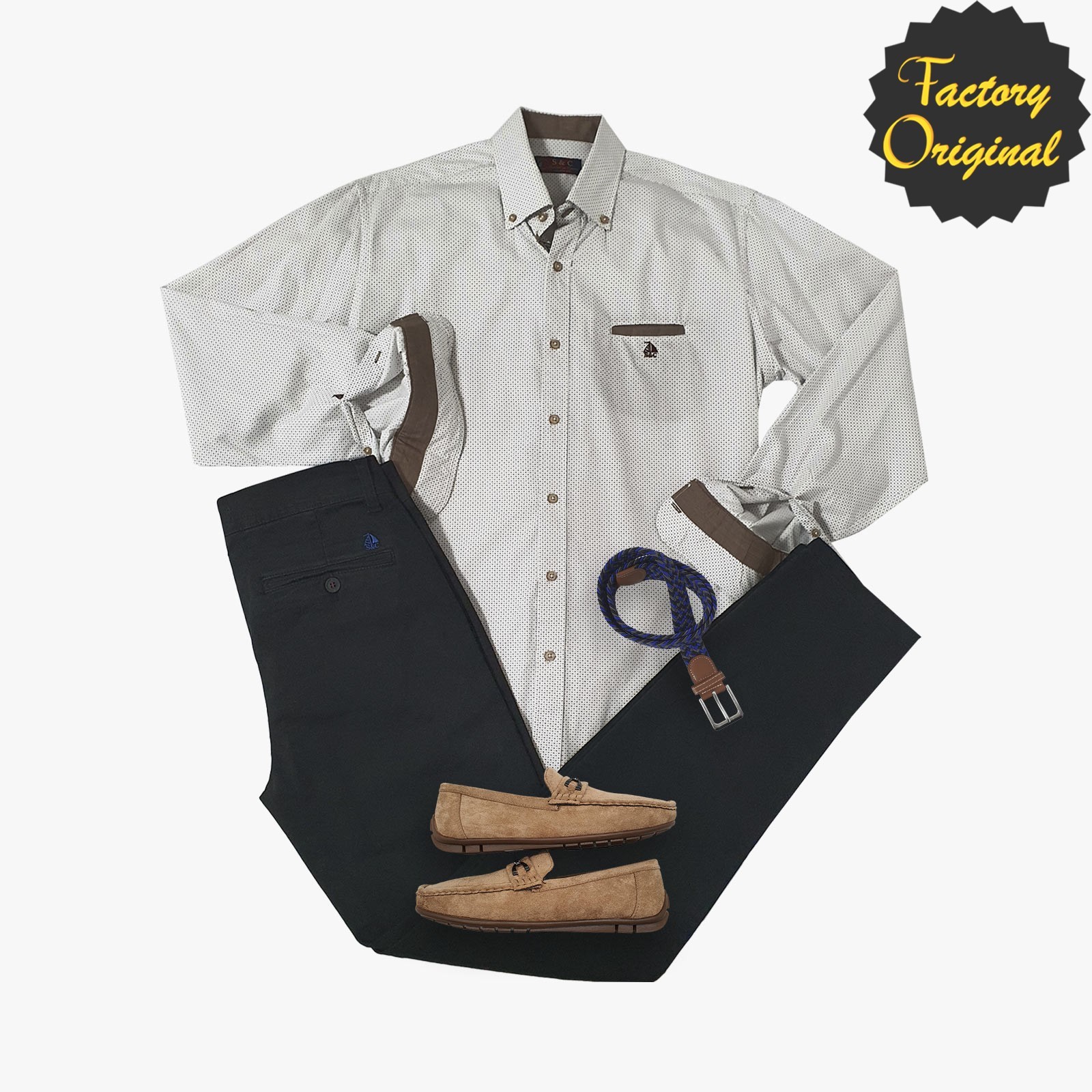 Pack camisa hombre barco fabian pantalón chino barco negro nautico infante beis SYC Factory Original