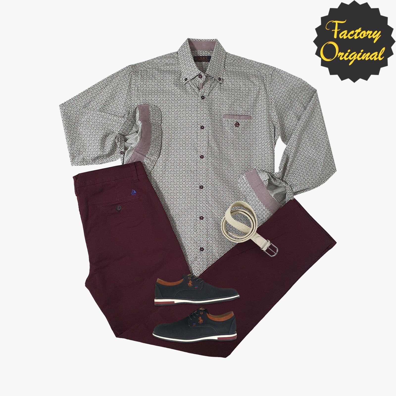 Pack camisa hombre barco marcos pantalón chino barco granate mocasin estandar negro SYC Factory Original