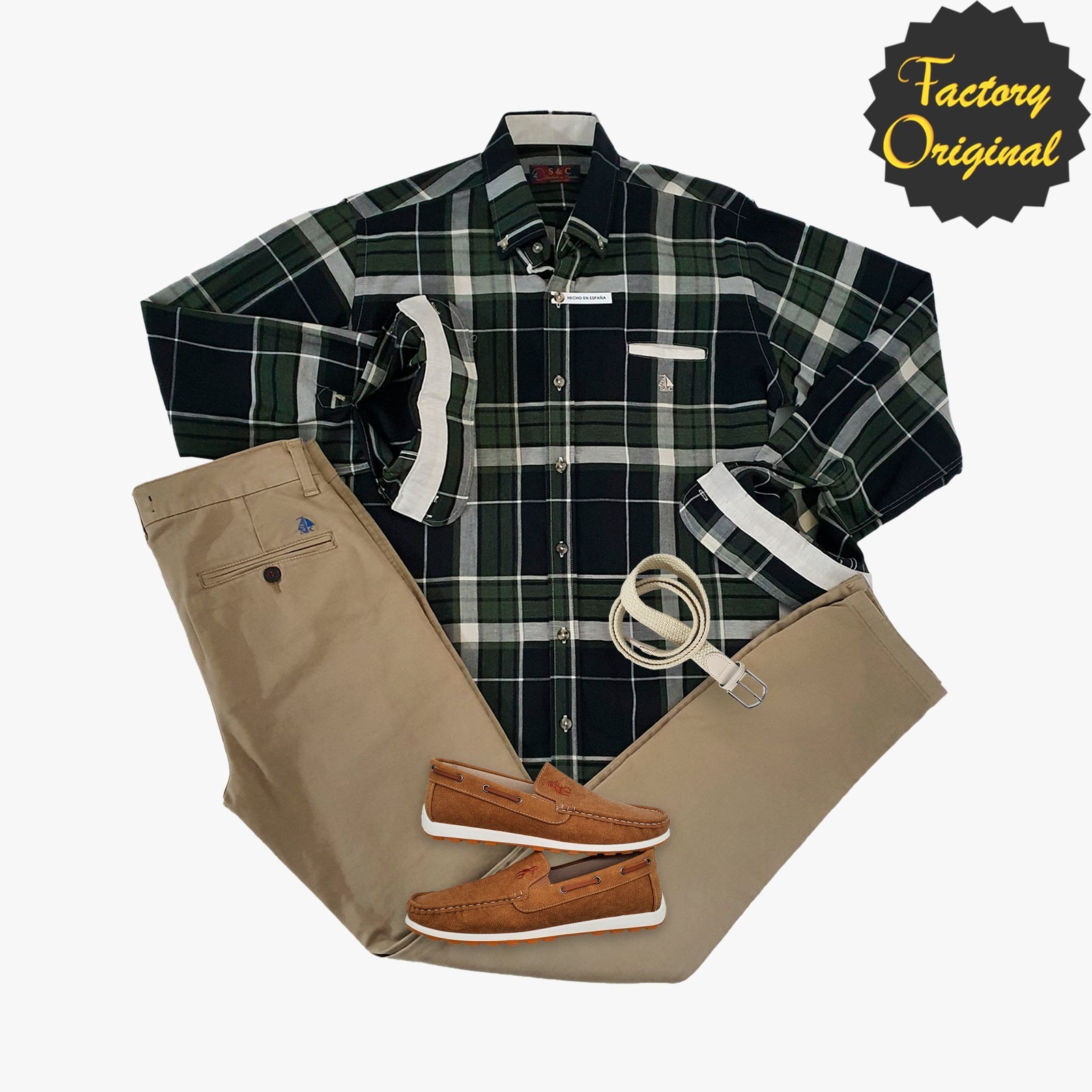 Pack camisa hombre barco ignite pantalón chino barco beis tostado nautico pluma camel SYC Factory Original