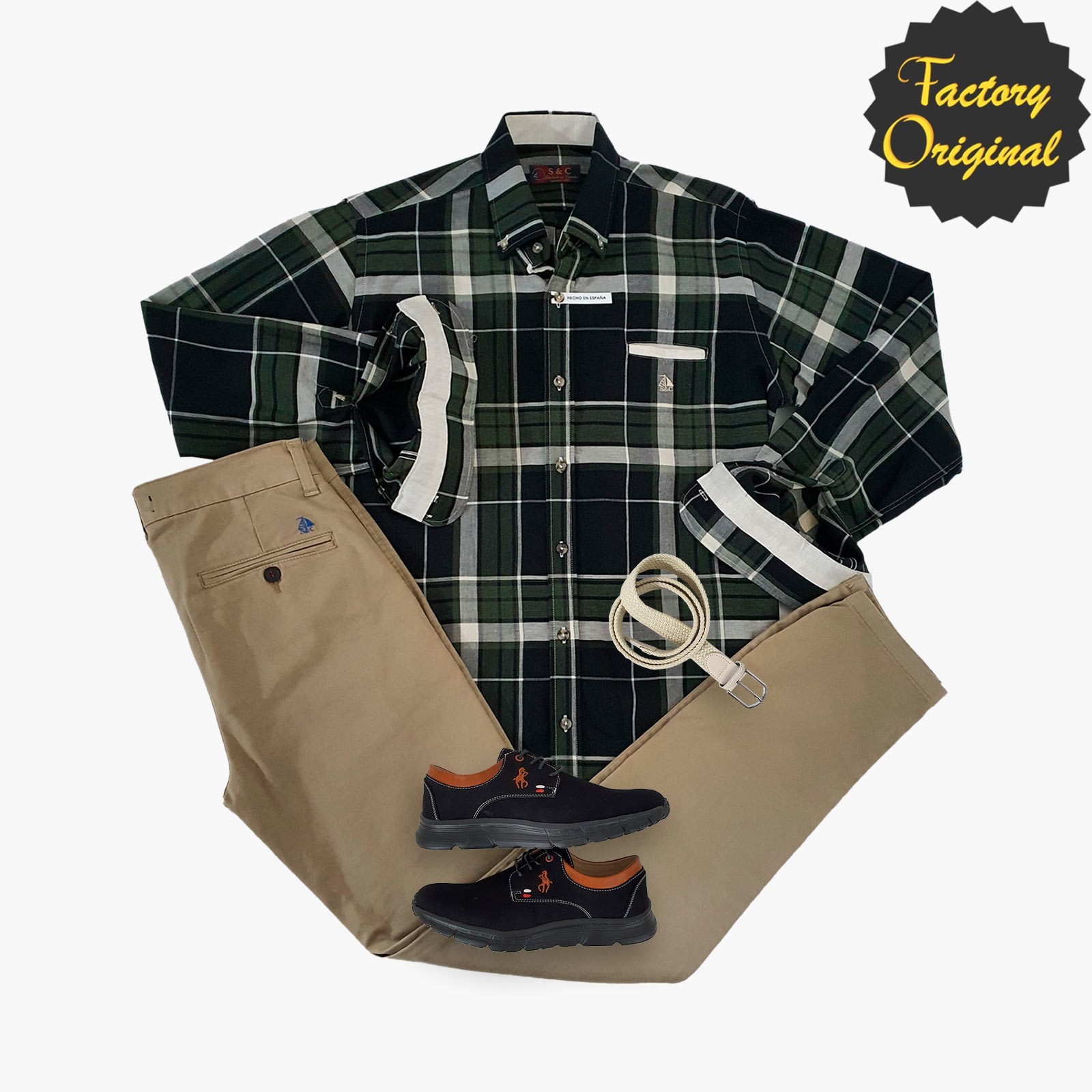 Pack camisa hombre barco ignite pantalón chino barco beis tostado mocasin pluma negro SYC Factory Original