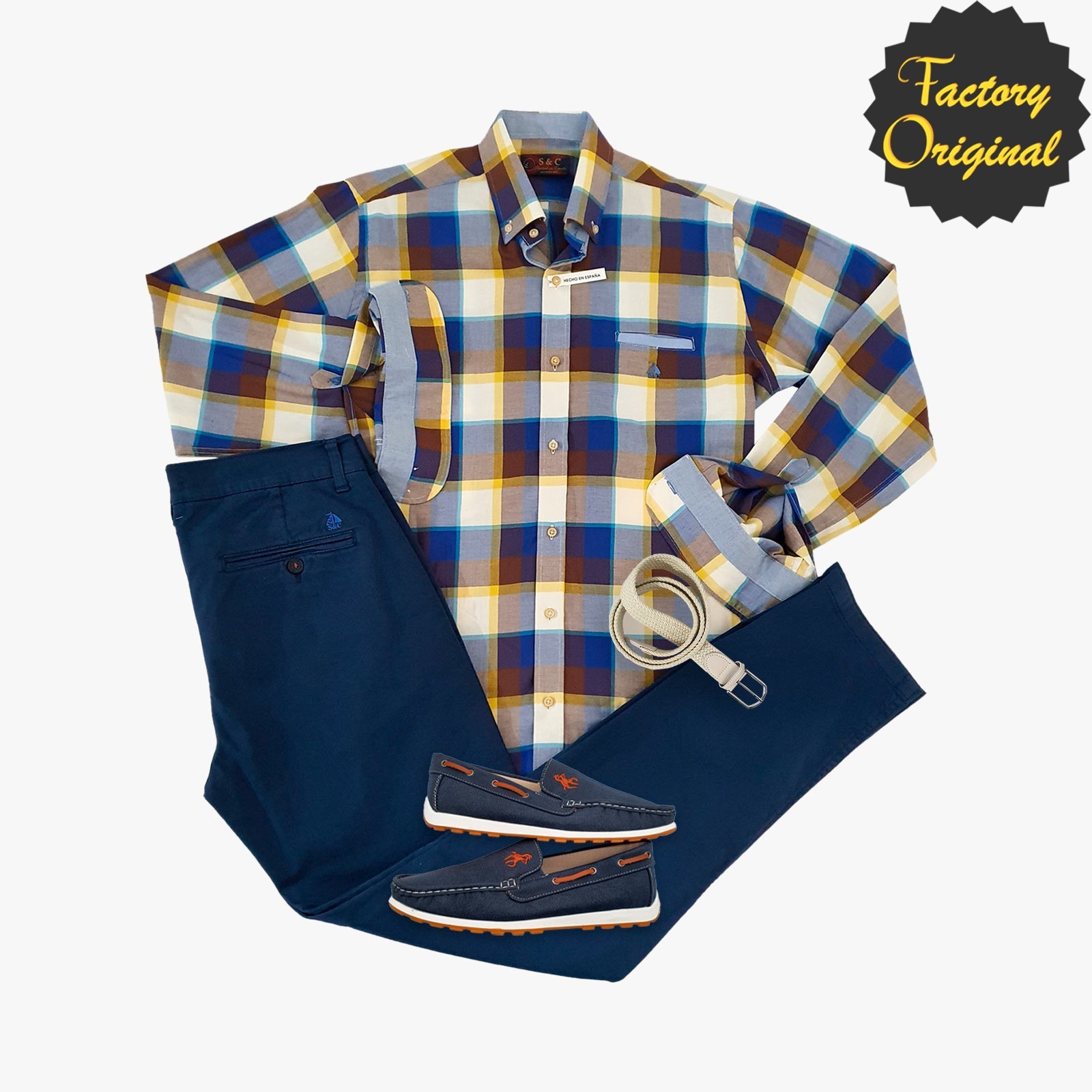 Pack camisa hombre barco pararel pantalón chino barco azul royal nautico pluma marino SYC Factory Original