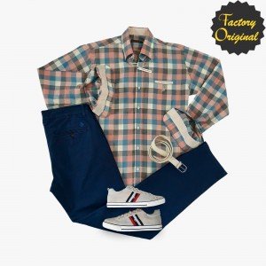 Pack camisa hombre barco binary tricolor pantalón chino barco azul royal deportivo street perla SYC Factory Original