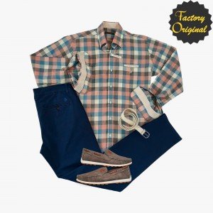Pack camisa hombre barco binary tricolor pantalón chino barco azul royal nautico pluma gris SYC Factory Original
