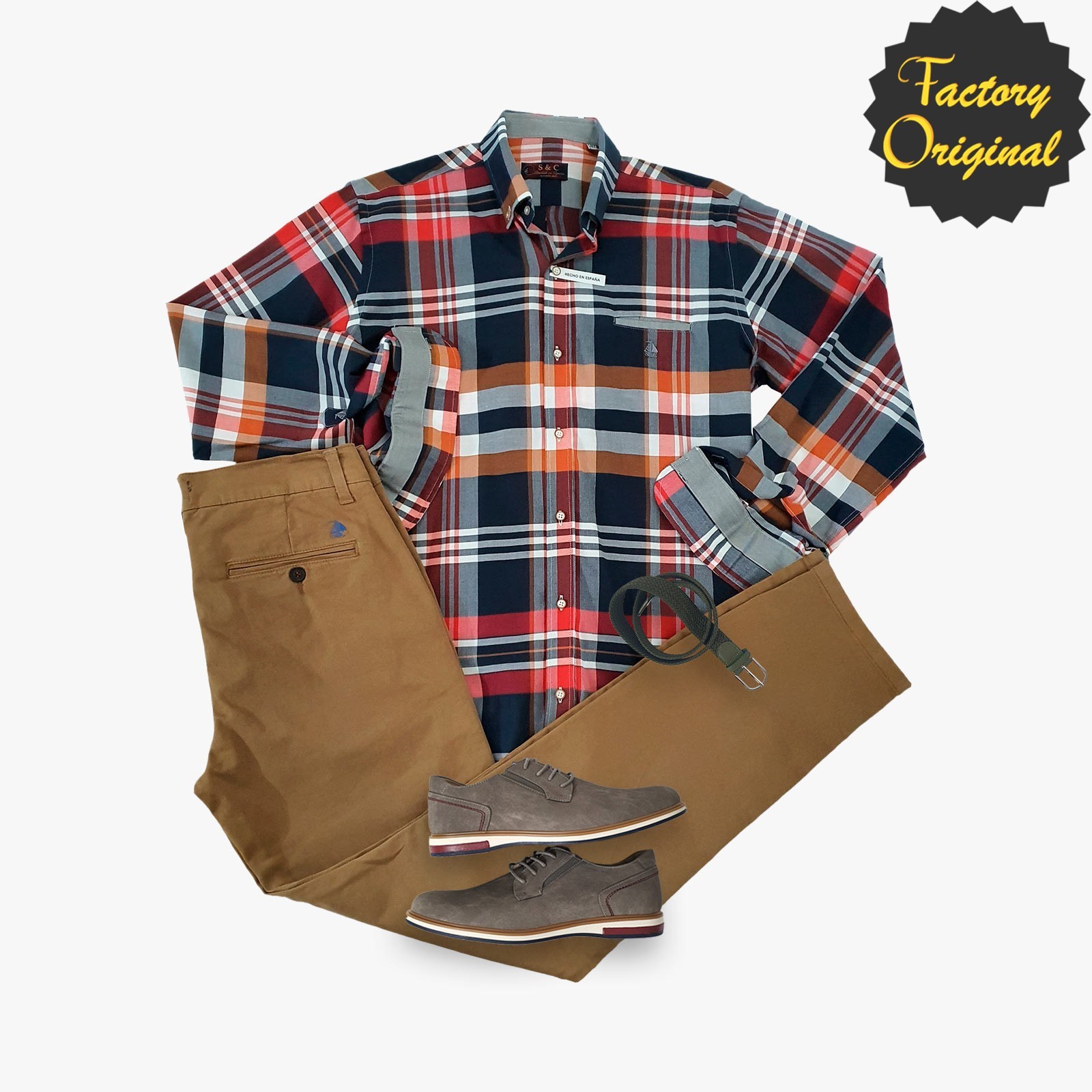 Pack camisa hombre barco Drauf chino camel Zapato gris SYC Factory Original