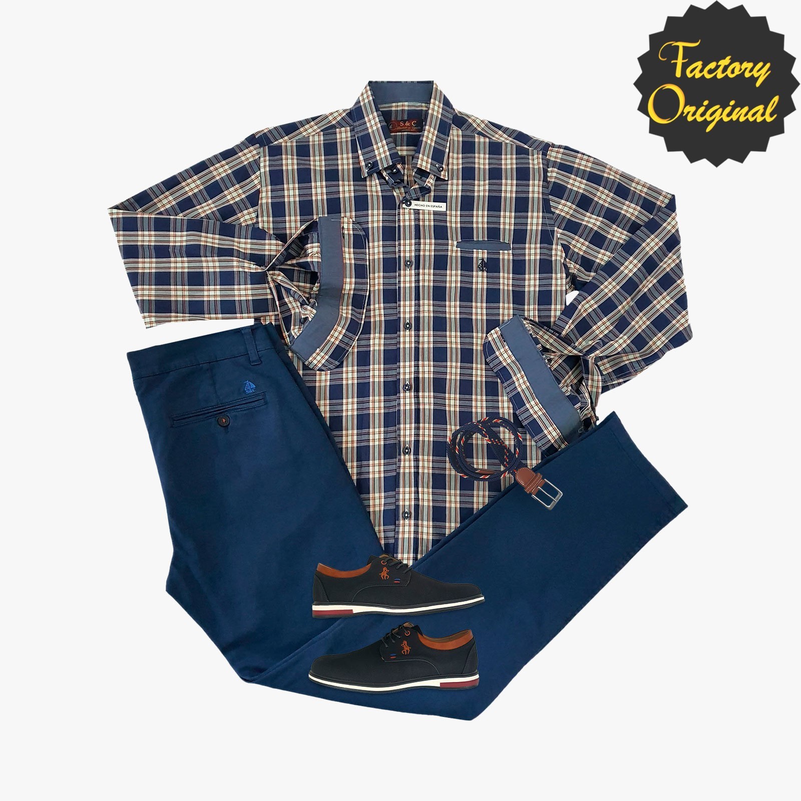 Pack camisa hombre barco Cef azul chino azul royal zapato negro SYC Factory Original