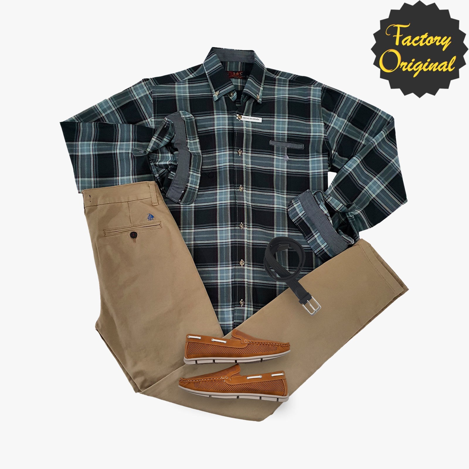 Pack camisa hombre barco Airt chino beis tostado nautico camel SYC Factory Original