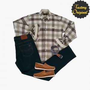 Pack camisa hombre barco Binary beis pantalon vaquero oscuro nautico camel SYC Factory Original