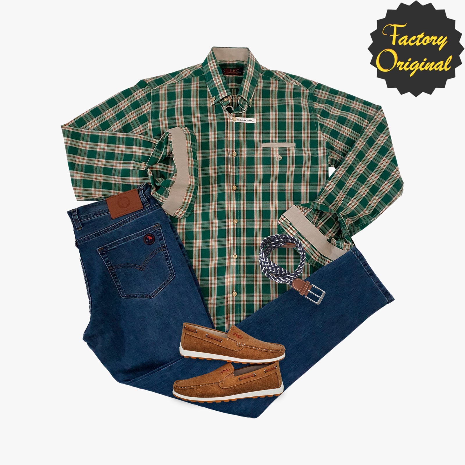 Pack camisa hombre barco Willy verde vaquero ibiza medio nautico camel SYC Factory Original
