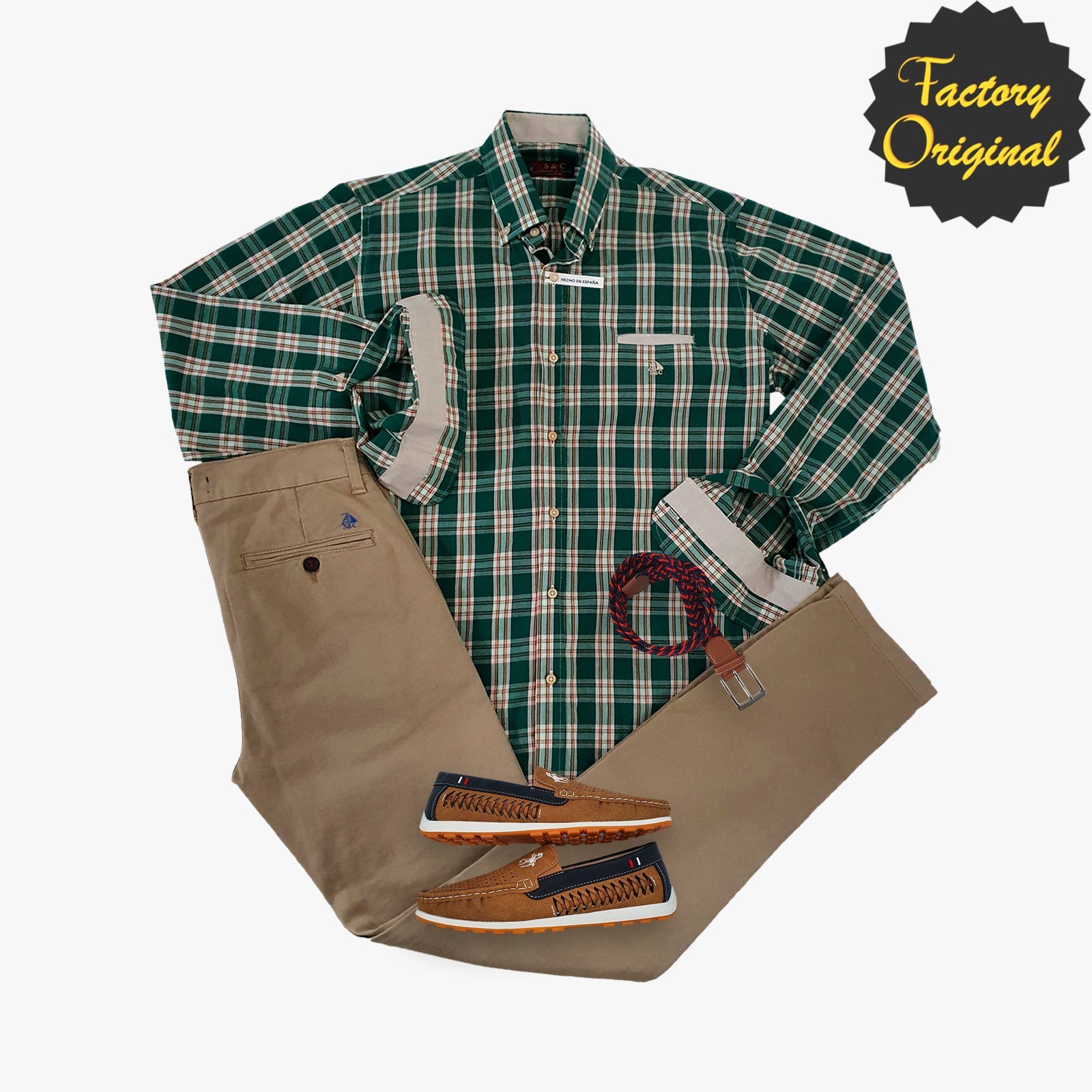 Pack camisa hombre barco Willy verde chino beis tostado nautico bicolor SYC Factory Original