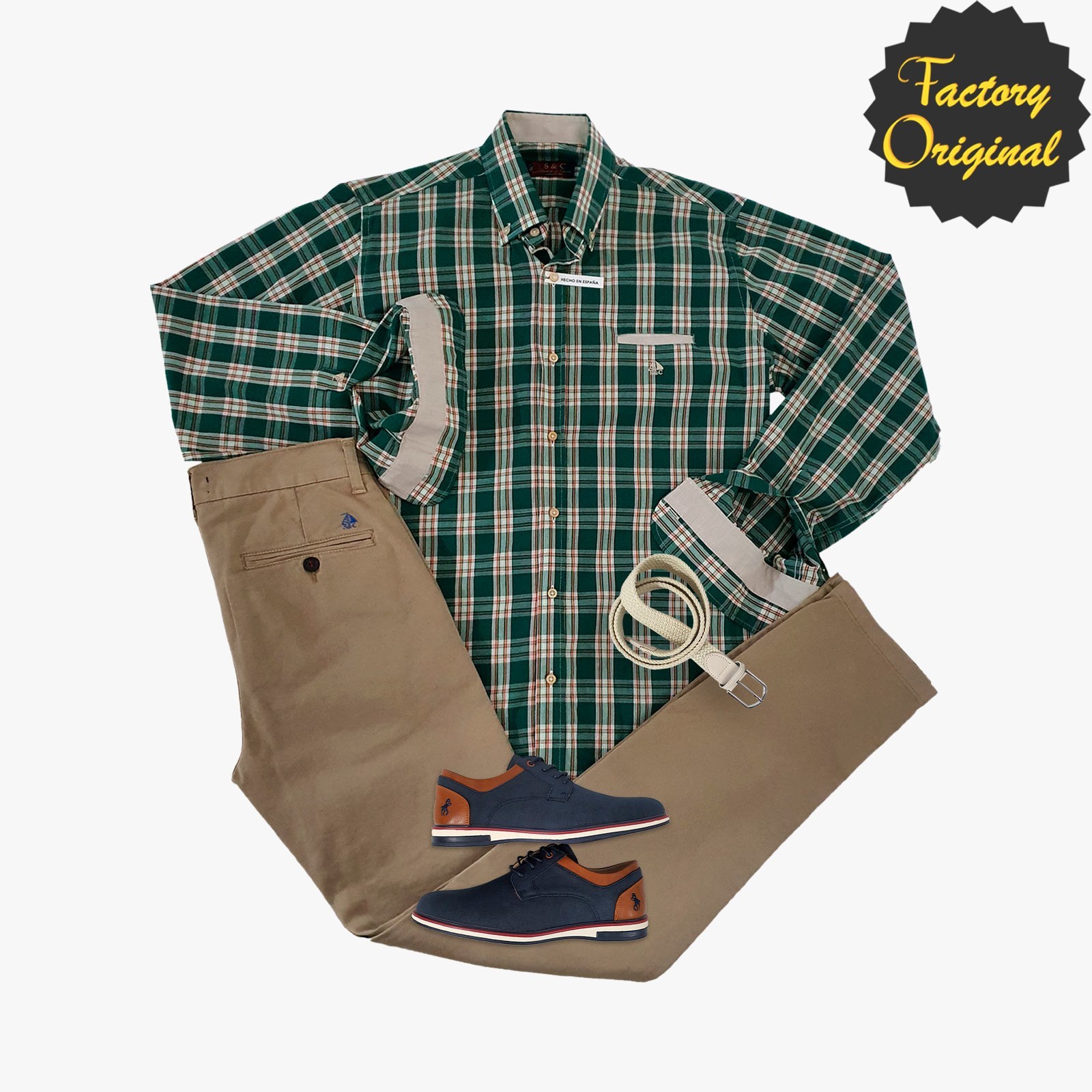 Pack camisa hombre barco Willy verde chino beis tostado zapato marino SYC Factory Original