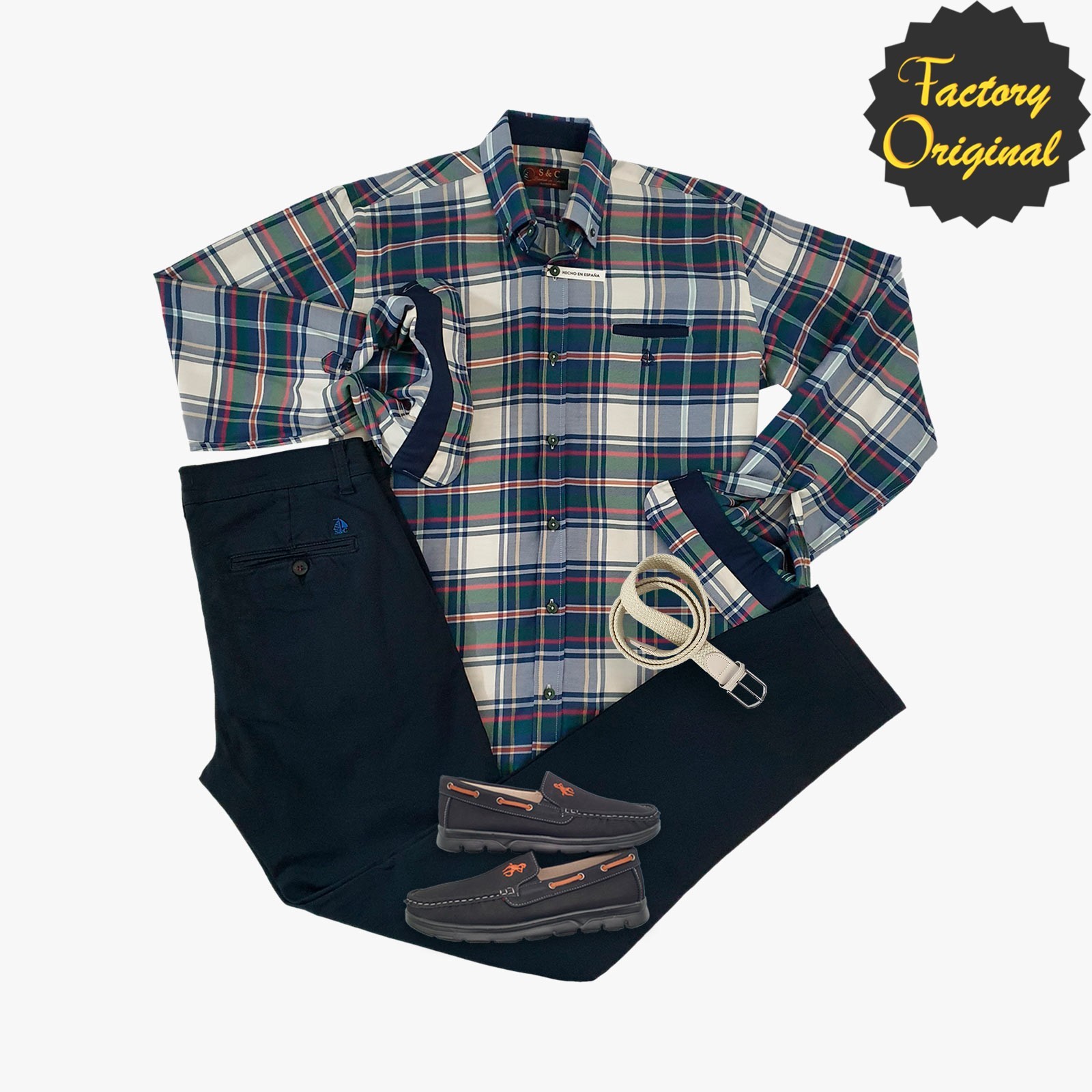 Pack camisa hombre barco Tail azul chino marino nautico negro SYC Factory Original