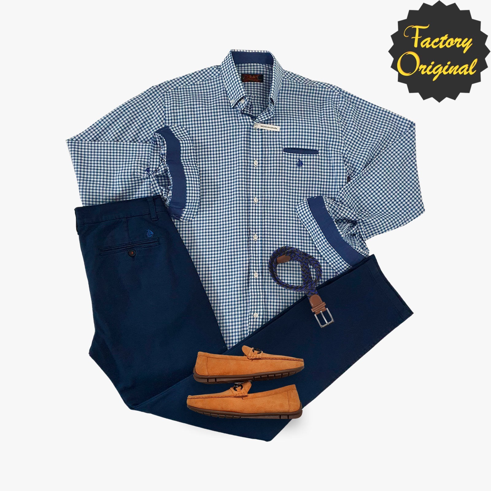 Pack camisa hombre barco cuadricula marino chino azul royal nautico camel SYC Factory Original