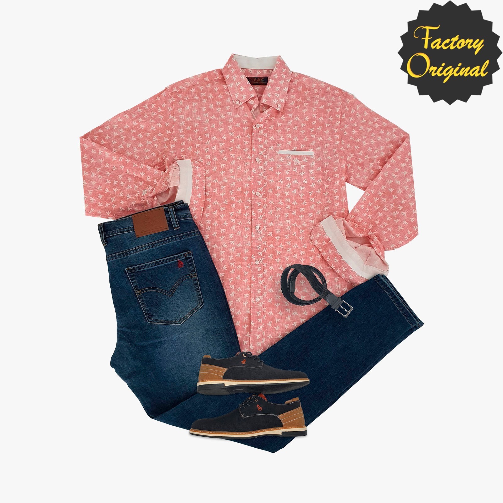 Pack camisa barco flowers rosa Pantalón barco Ibiza vaquero oscuro mocasin premium terra negro SYC Factory Original