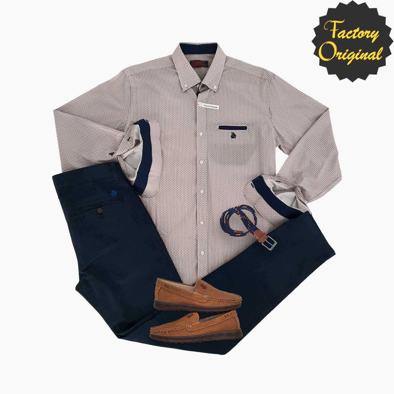 Pack camisa barco beltrán Pantalón chino barco bolsillo clásico marino nautico nord camel SYC Factory Original