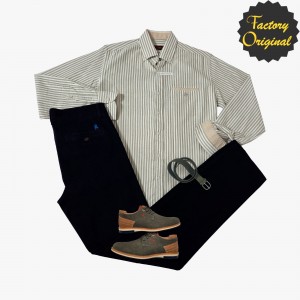 Pack camisa barco rayas mediterráneo Pantalón chino micropunto negro mocasin terra kaky SYC Factory Original