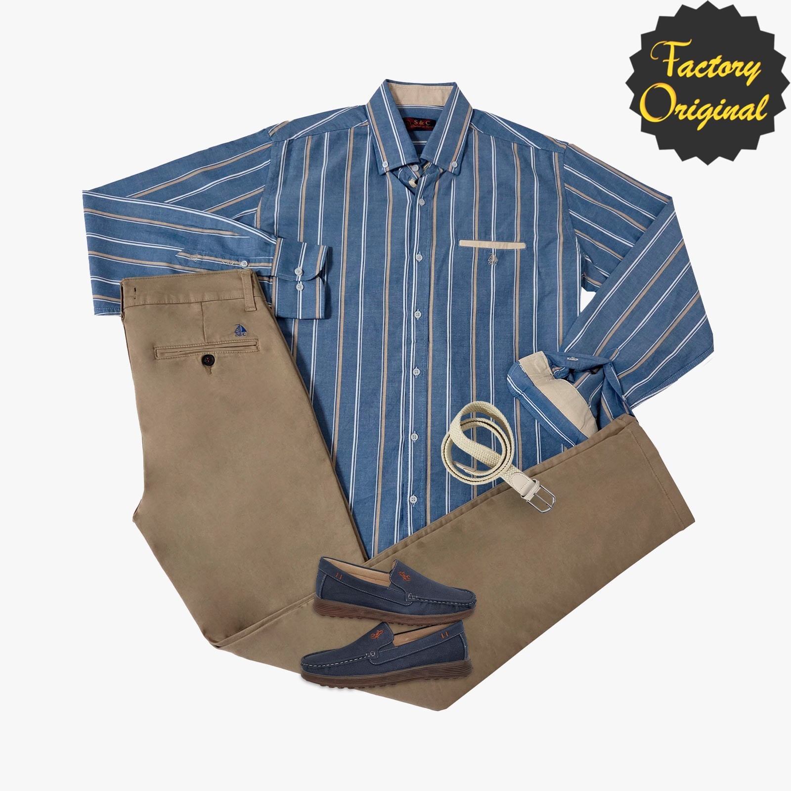Pack camisa barco rayas palermo Pantalón chino barco bolsillo clásico beis tostado nautico nord marino SYC Factory Original