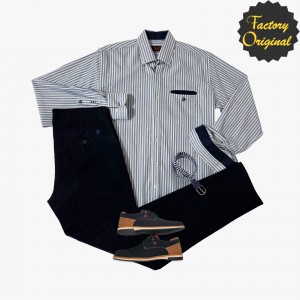Pack camisa barco rayas sorrento Pantalón chino micropunto negro mocasin terra negro SYC Factory Original
