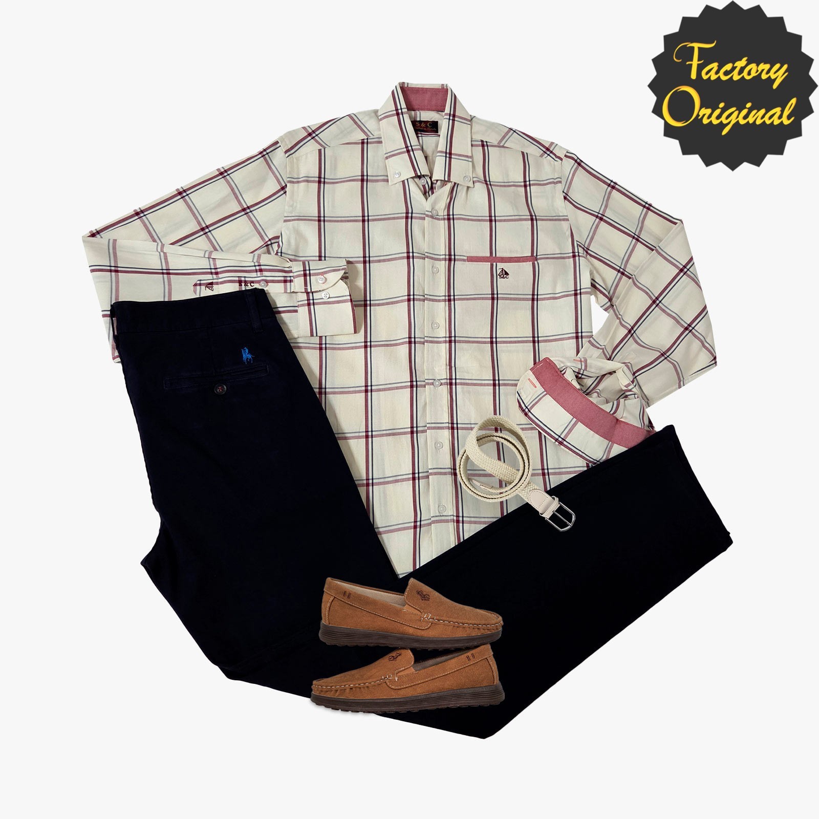 Pack camisa barco cuadro perla Pantalón chino micropunto negro nautico nord camel SYC Factory Original