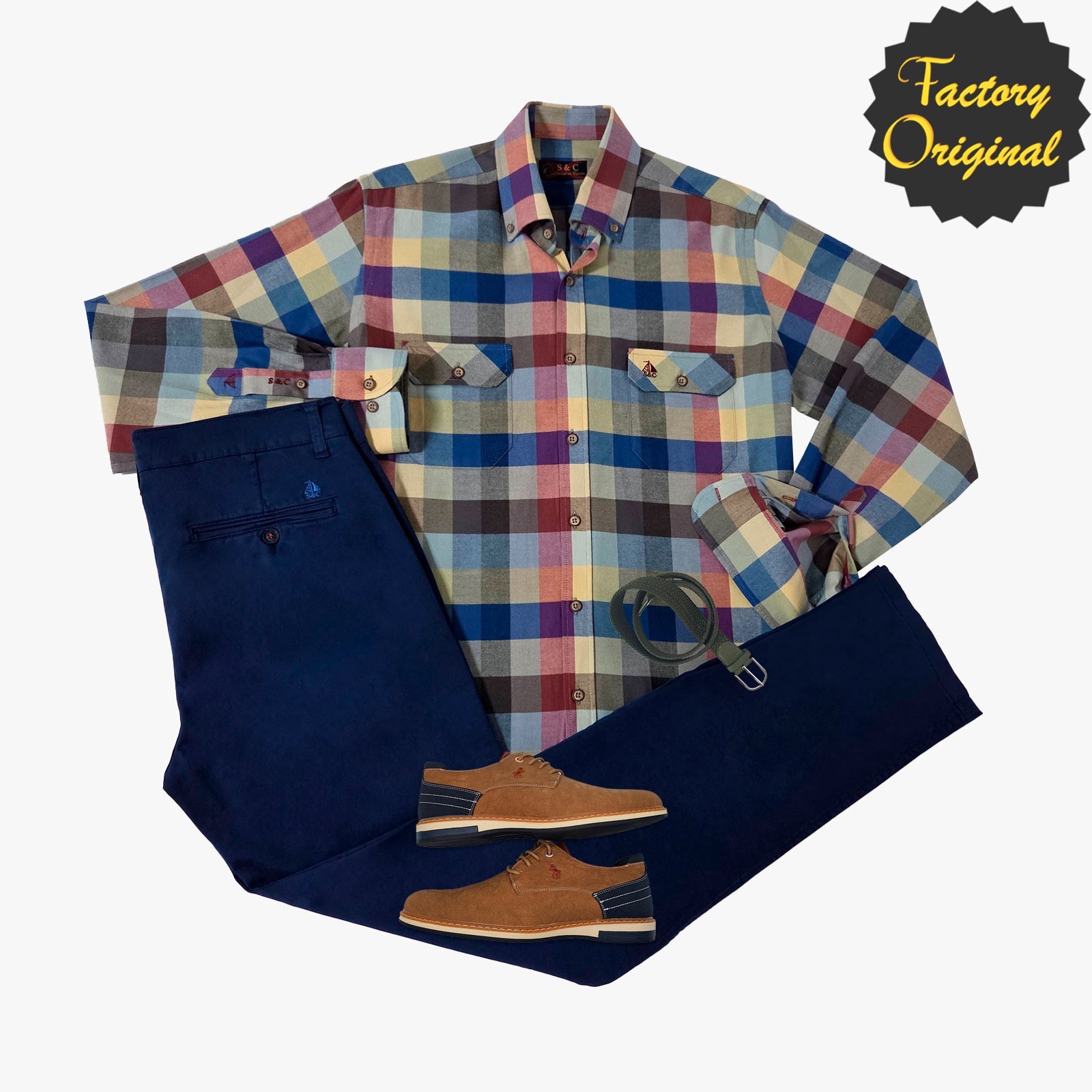 Pack camisa barco viella cuadro bristol Pantalón chino barco azul royal mocasin terra camel SYC Factory Original
