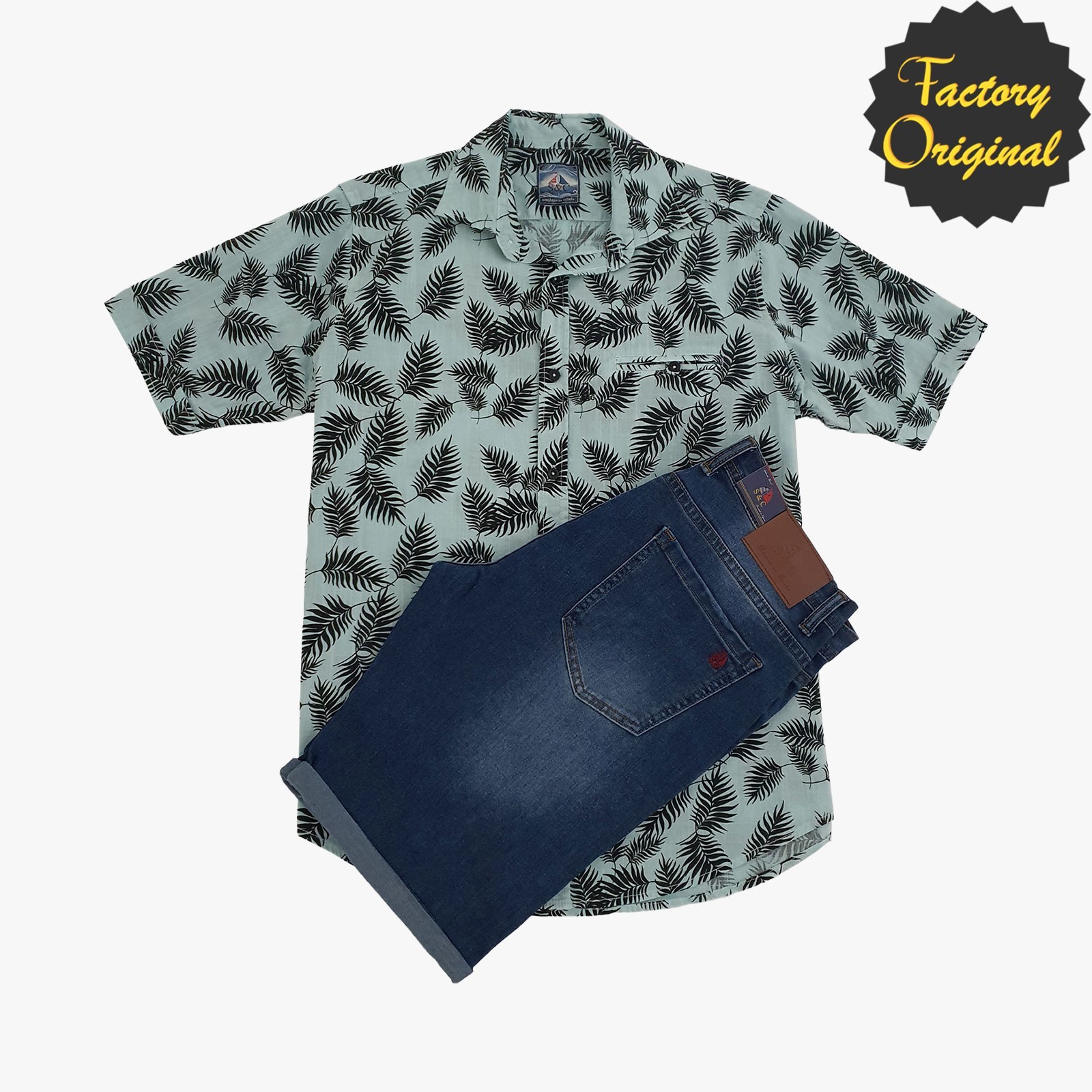 Conjunto de Bermuda barco vaquero medio camisa manga corta hojas verde SYC Factory Original
