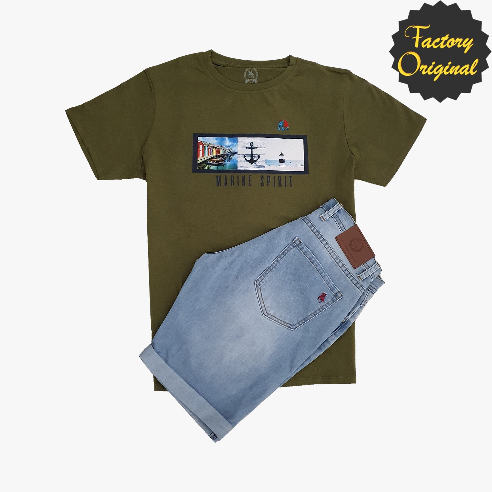 Conjunto de Bermuda vaquera clara camiseta cartagena kaki SYC Factory Original
