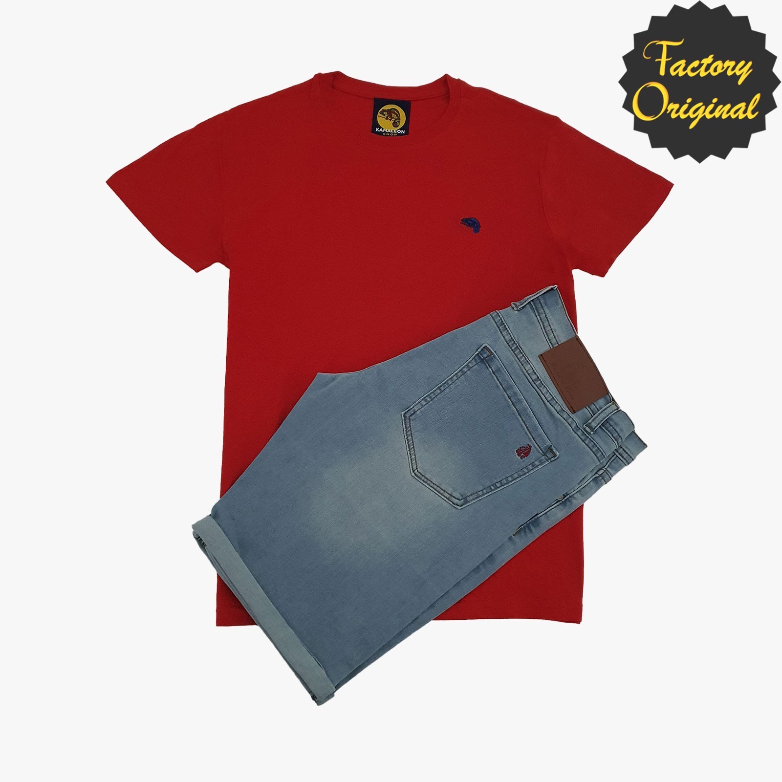 Conjunto de Bermuda vaquera clara camiseta kamaleon rojo SYC Factory Original