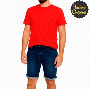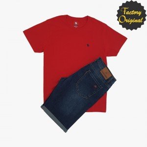 Conjunto de Bermuda chaparro barco logo vaquero oscuro camiseta caballo rojo SYC Factory Original