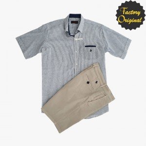 Conjunto Camisa barco manga corta modelo universitario azulon bermuda beis tostado SYC Factory Original
