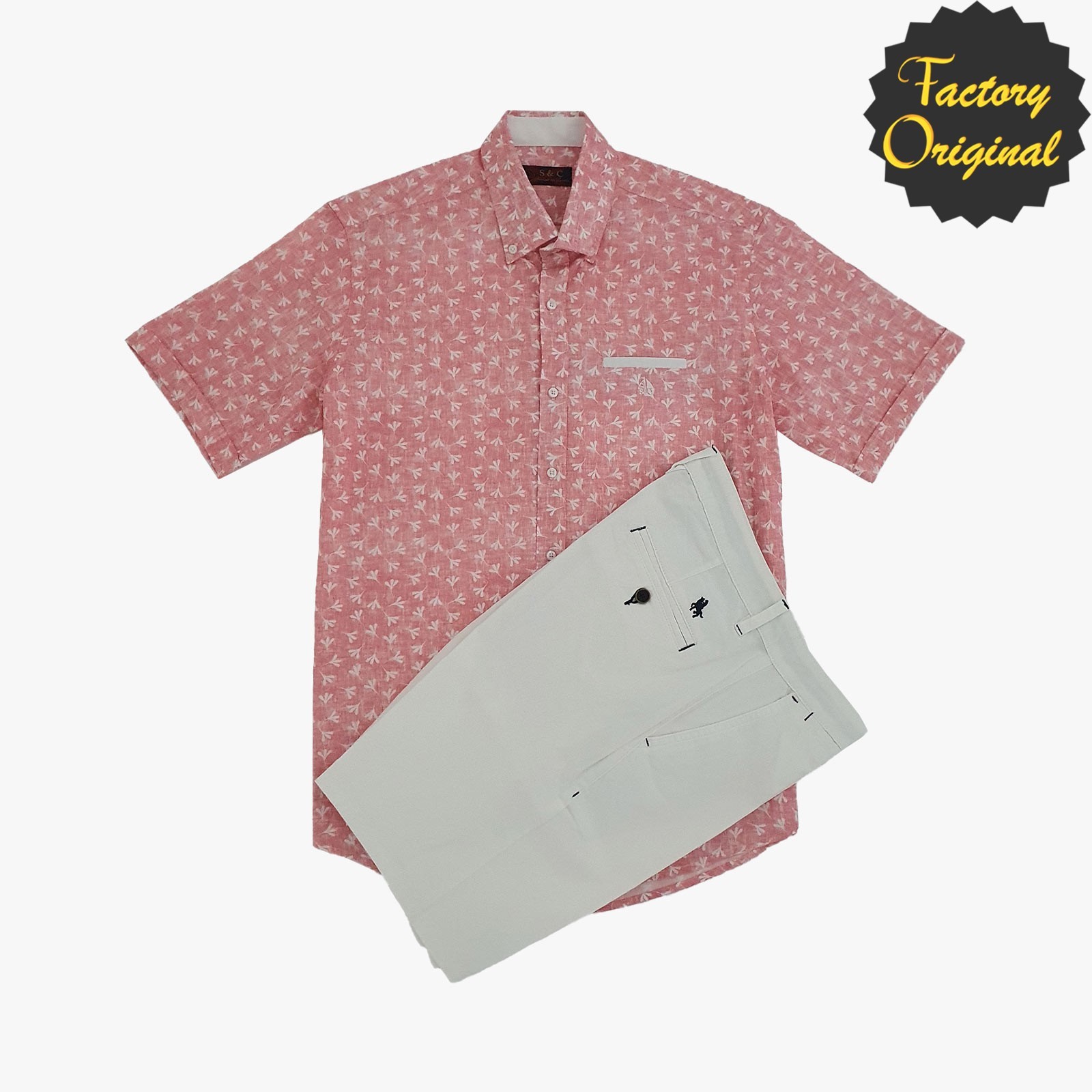 Conjunto Camisa barco manga corta modelo flowers rosa bermuda blanca SYC Factory Original