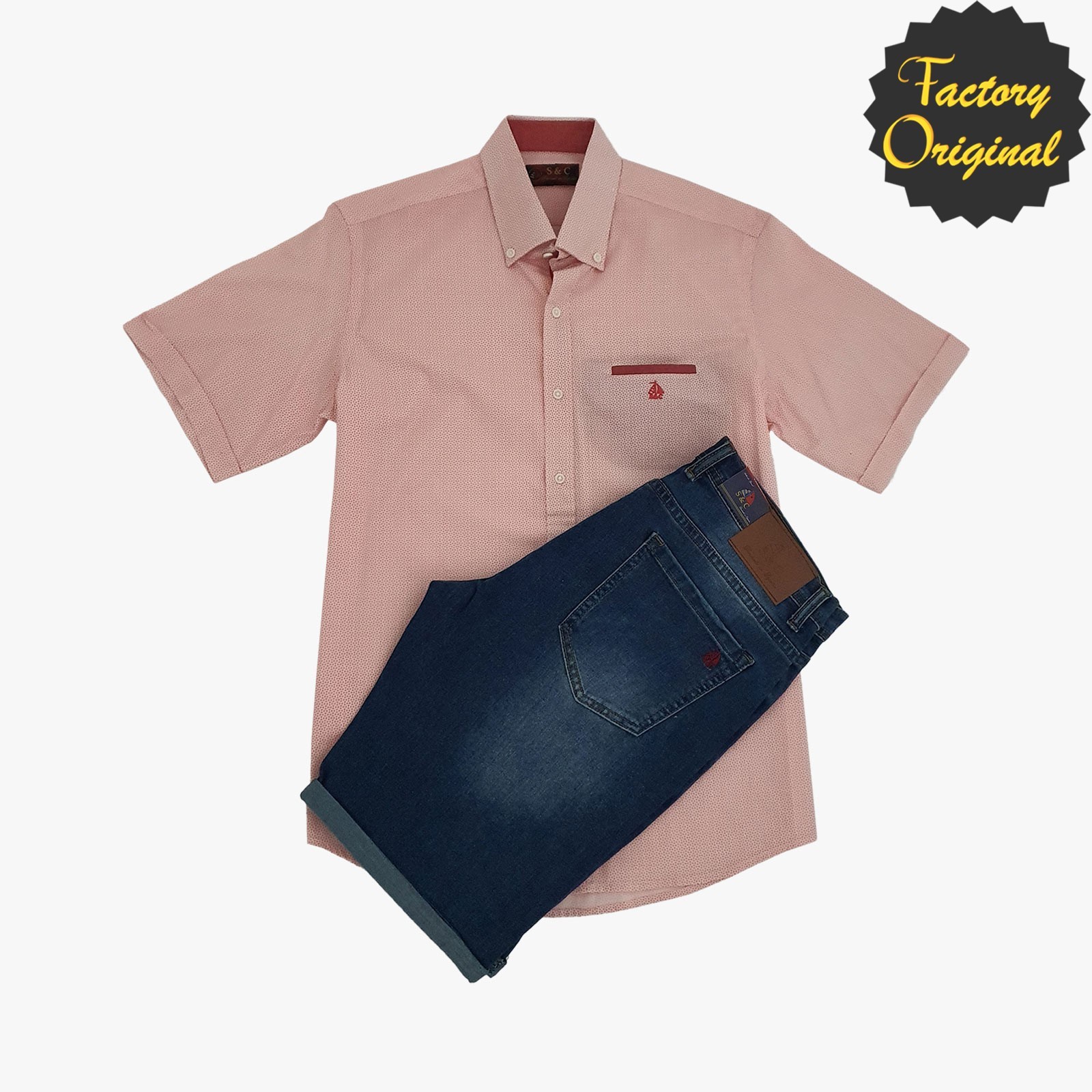 Camisa hombre manga corta modelo Trenzado rojo escarlata bermuda barco vaquero medio SYC Factory Original