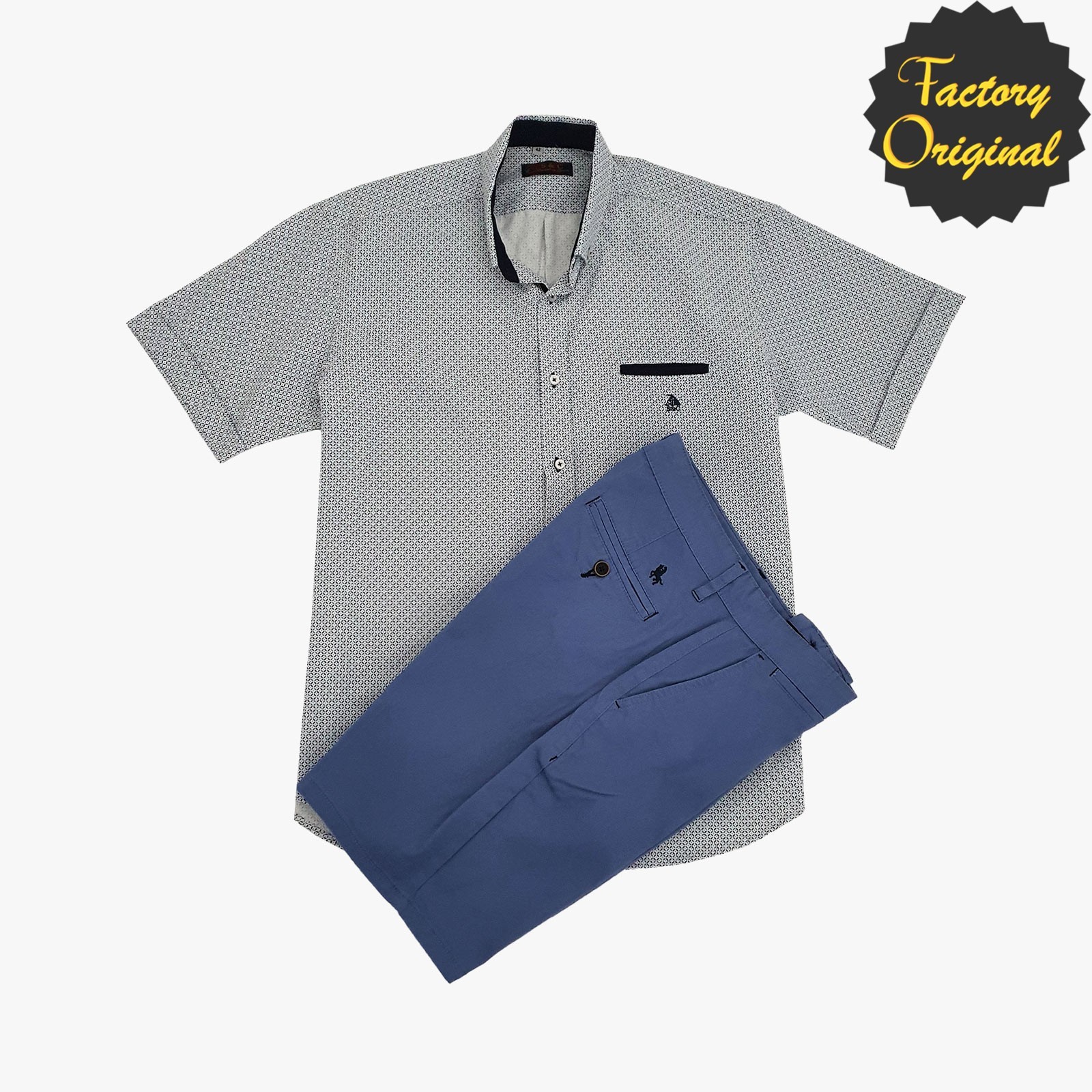 Camisa hombre manga corta modelo Mosaico azul bermuda nuevo celeste SYC Factory Original