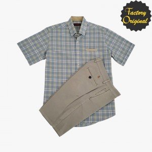 Camisa hombre manga corta modelo Escocia azul verdoso bermuda nuevo beis tostado SYC Factory Original
