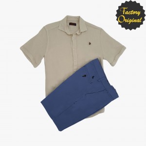 Camisa hombre manga corta modelo Vértice corto beige arena bermuda nuevo celeste SYC Factory Original
