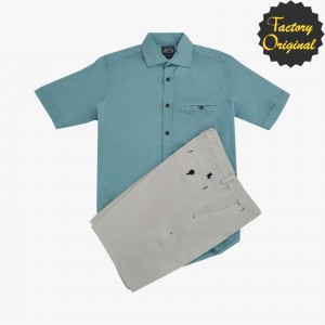 Camisa hombre manga corta tipo lino modelo Serenidad verde claro bermuda blanca SYC Factory Original