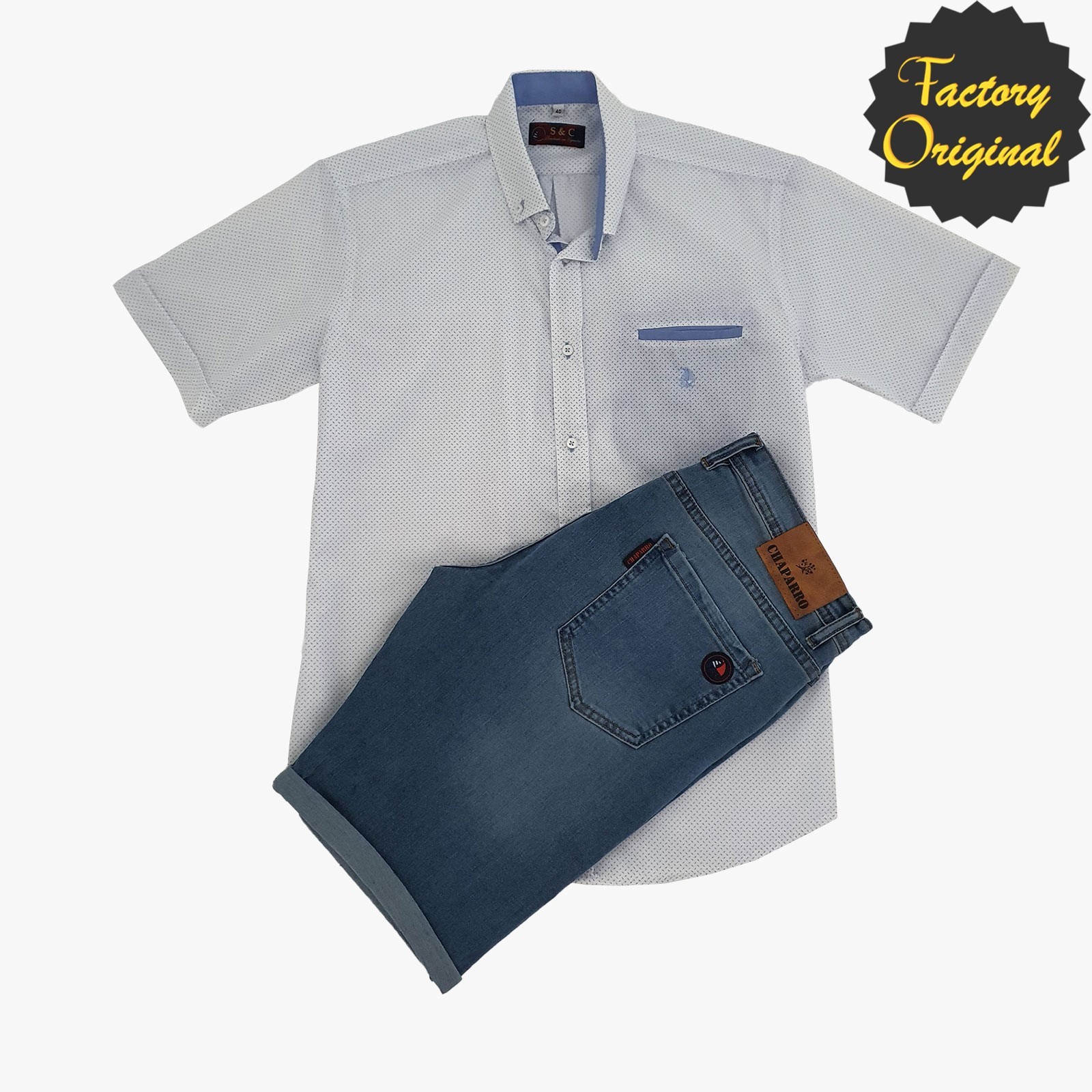 Camisa hombre manga corta modelo brisa azul bermuda chaparro barco vaquero medio SYC Factory Original