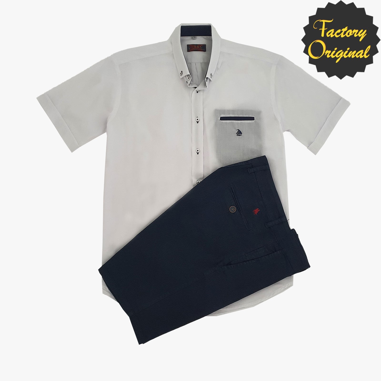 Camisa hombre manga corta modelo clásico blanco bermuda marino SYC Factory Original