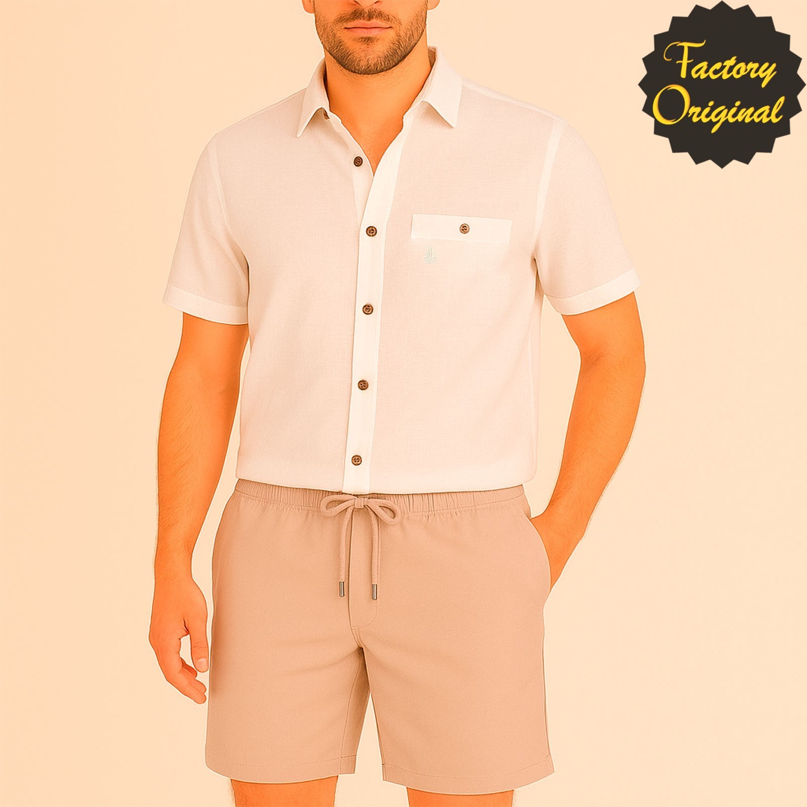 Conjunto Camisa manga corta lino modelo serenidad blanco bermuda lino beis SYC Factory Original