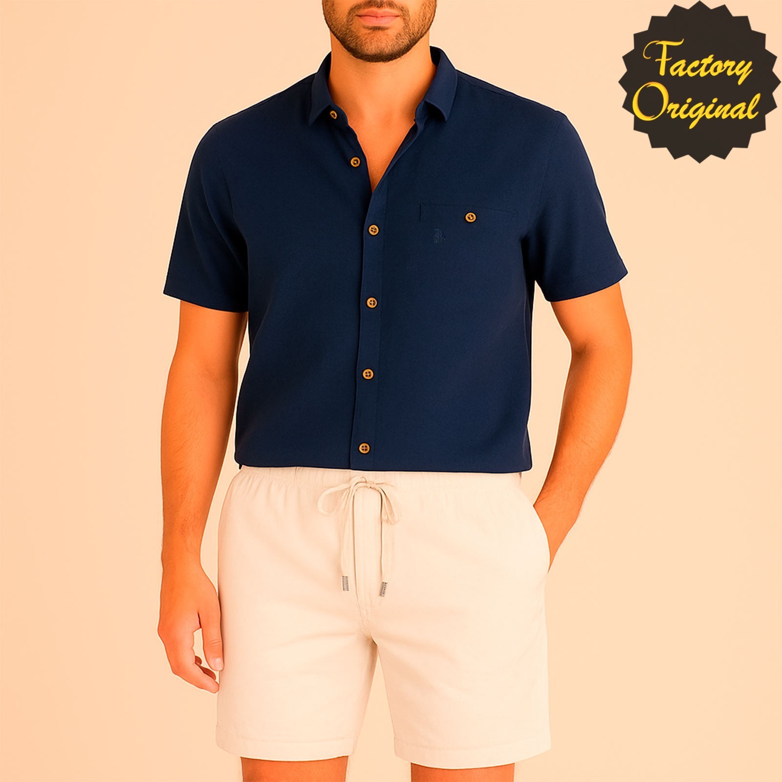 Conjunto Camisa manga corta lino modelo Serenidad azul oscuro bermuda lino blanco SYC Factory Original