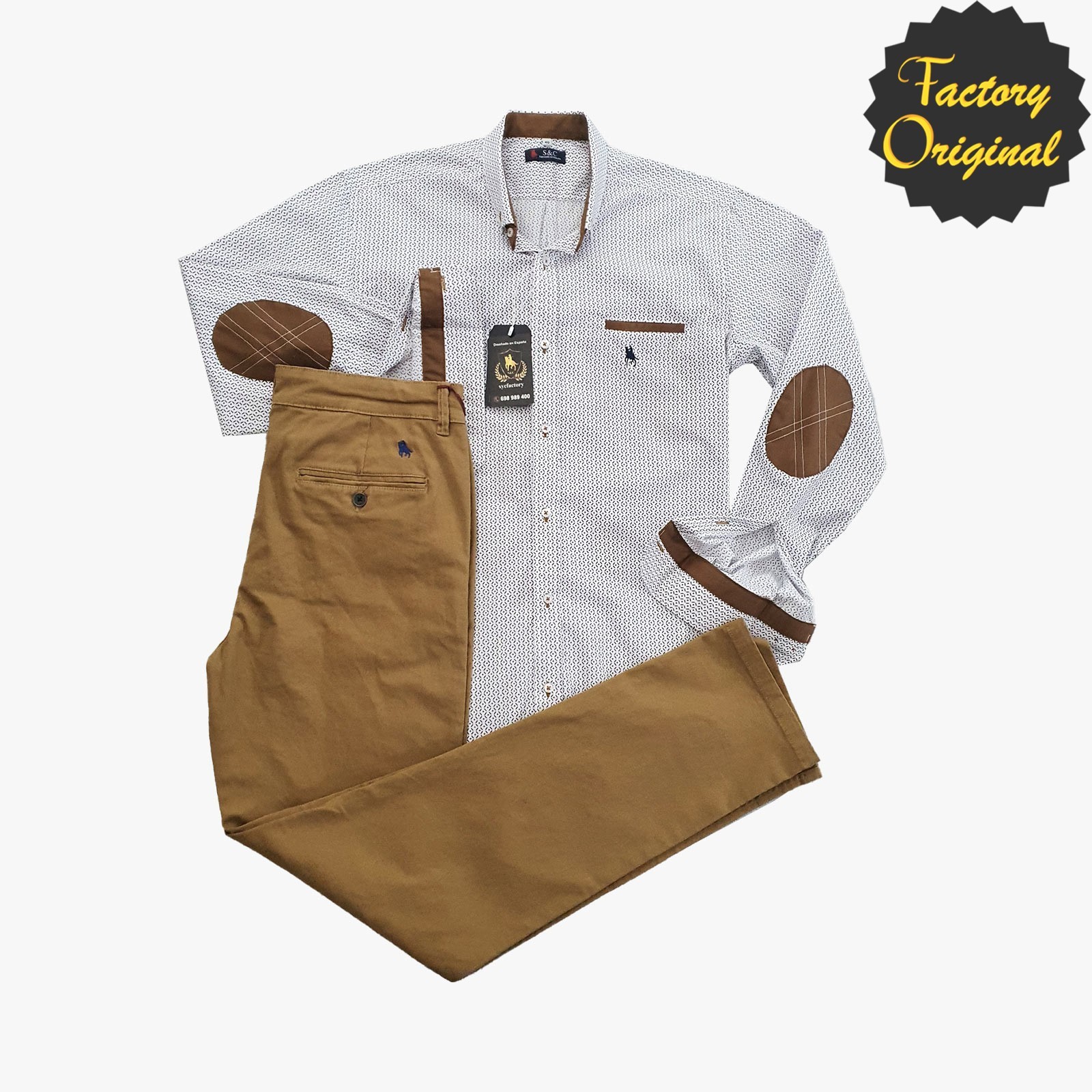 Conjunto de chino elástico camel camisa modelo puntilleo coderas camel SYC Factory Original
