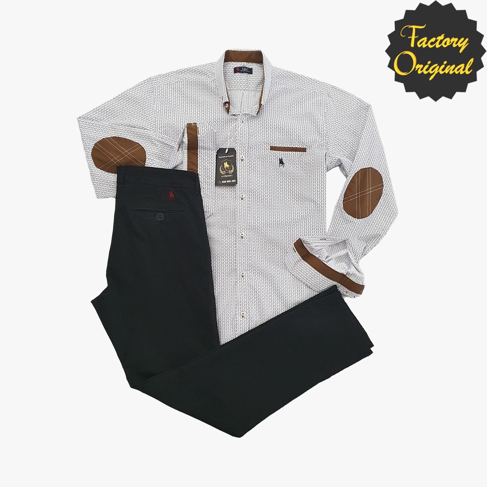 Conjunto de chino elastico negro camisa modelo puntilleo coderas camel SYC Factory Original