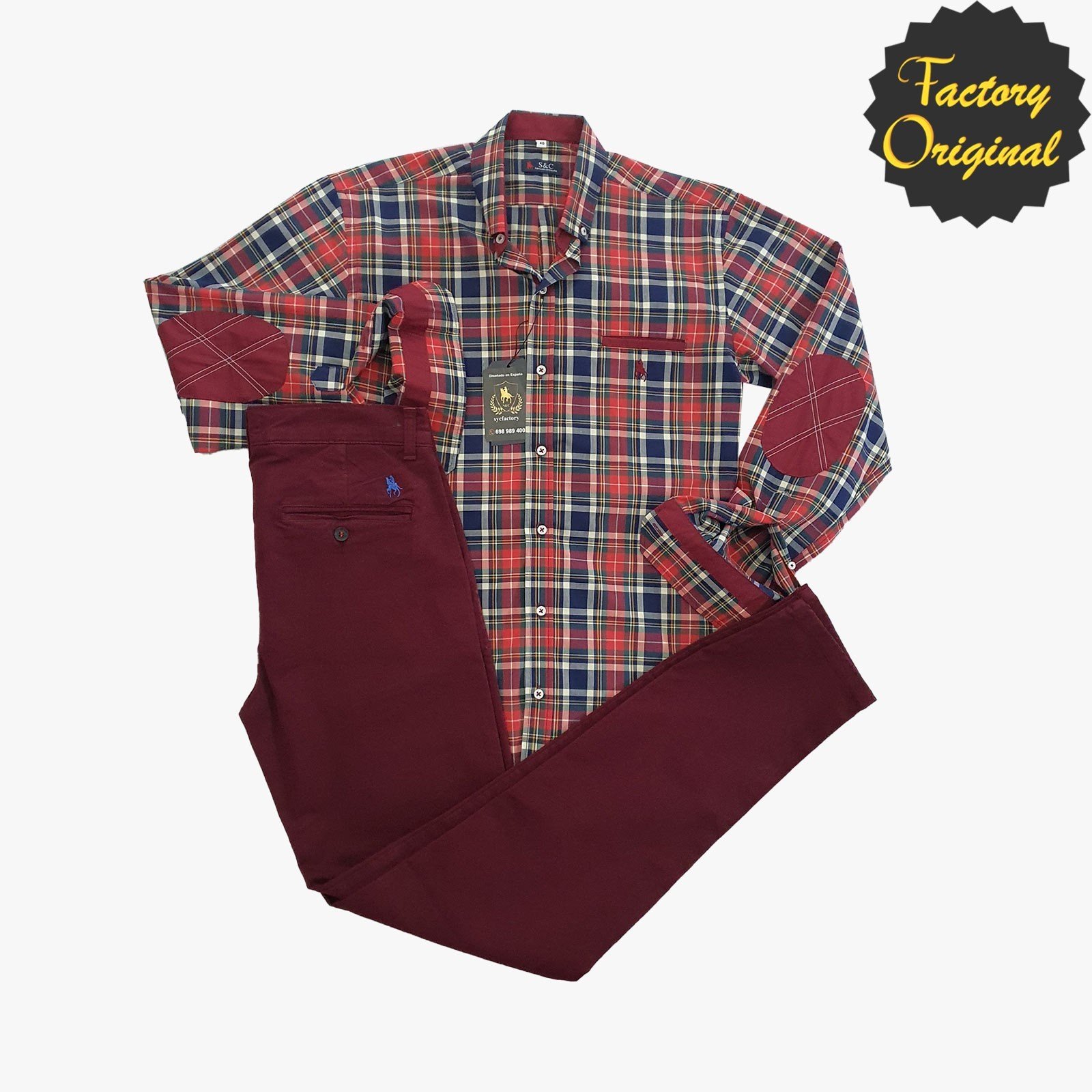 Conjunto de Chino elástico granate camisa cuadrante fino SYC Factory Original